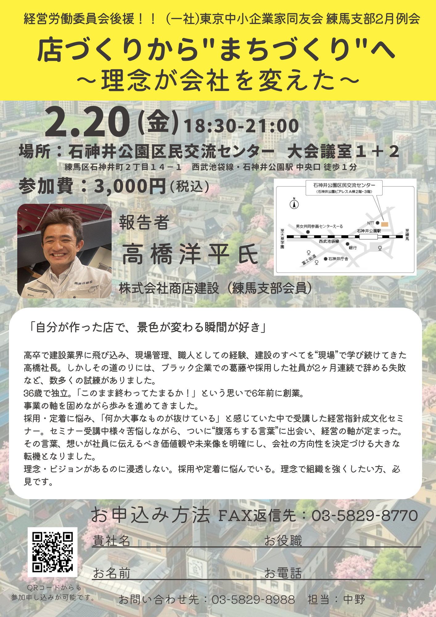 2/20 練馬支部2月例会「店づくりから”まちづくり”へ~理念が会社を変えた~」