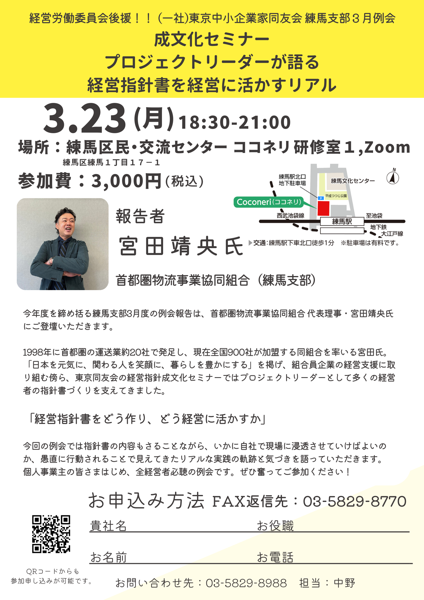 今年度を締め括る練馬支部3月度の例会報告は、首都圏物流事業協同組合 代表理事・宮田靖央氏にご登壇いただきます。